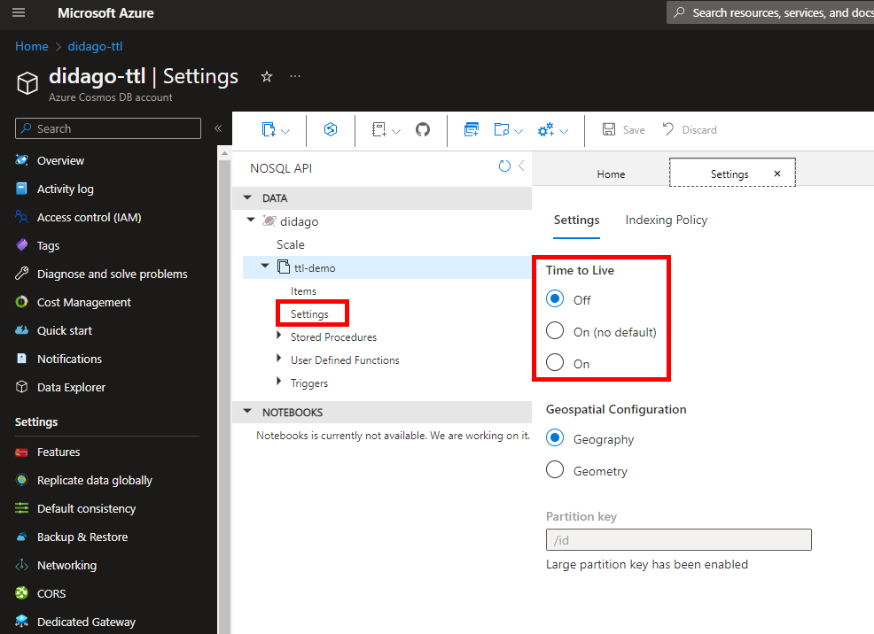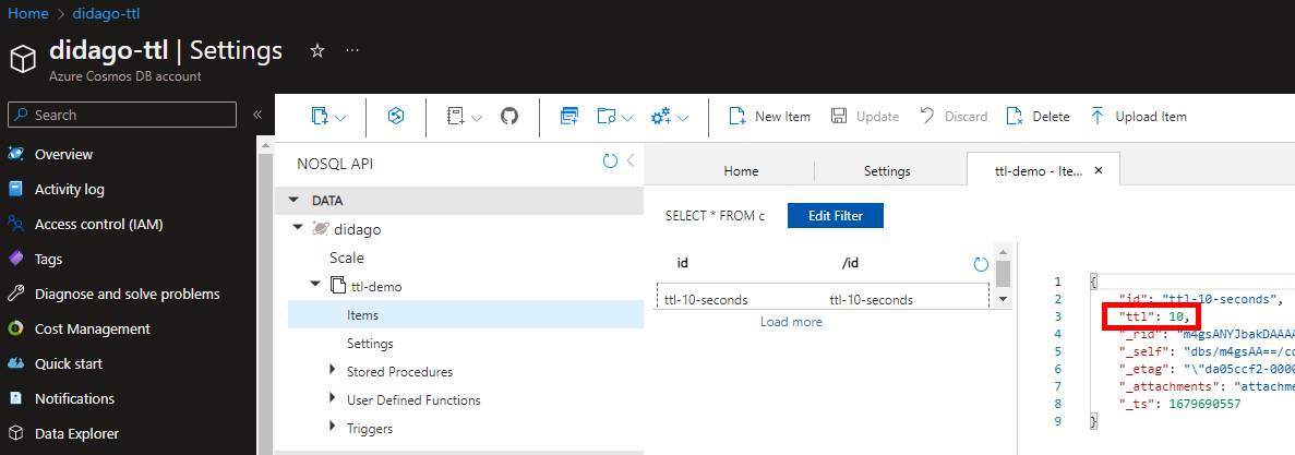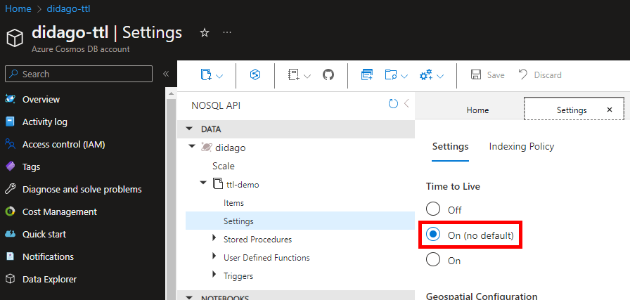 When you have played with Cosmos DB before, you probably have seen the TTL settings page.